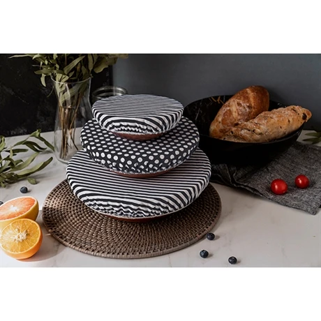 Fini les feuilles d’aluminium et films plastiques, utilisez les couvre-bols en coton Nuts pour une utilisation plus écoresponsable et plus économique. Remplacez vos feuilles à usage unique par un matériau 100% naturel, durable et résistant avec une esthétique originale grâce aux motifs réversibles, à pois d’un côté et à bandes de l’autre.