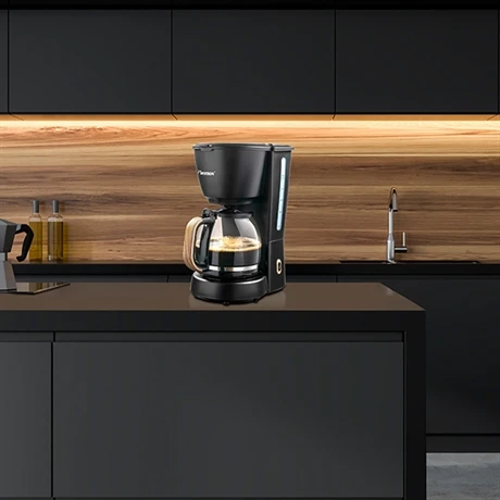 La machine à café filtre Bestron au design noir et bois est originale. Esthétique et performante, elle vous permet de préparer jusqu’à 10 tasses de café en quelques minutes grâce à sa puissance de 1000 W.