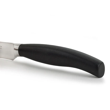 Ce couteau fabriqué en Espagne a une lame de 10 cm et est forgé à chaud en une seule pièce sans soudure. Son manche injecté en polypropylène noir assure une excellente durabilité. Il est surmoulé sur la soie du couteau pour être parfaitement inséparable et assurer un ensemble solide. Hygiénique, ergonomique et agréable à toucher, le manche est également très résistant aux chocs ainsi qu’aux aliments acides et variations de températures.