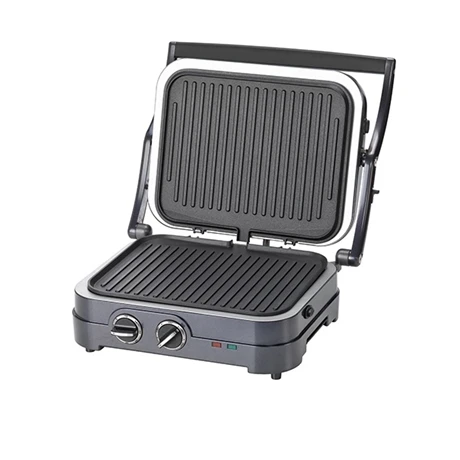 Utilisable comme grill, barbecue ou pour chauffer vos paninis, le Griddler Elite Multifonctions Midnight Blue GR47BE pourra vous accompagner dans de nombreuses préparations. Peut être utilisé ouvert à plat ou fermé. Ses charnières flottantes peuvent aller jusqu’à 8 cm d’épaisseur et ainsi assurer une cuisson homogène des 2 cotés. L’appareil est fourni avec 2 plaques de cuisson, plancha et grill compatibles lave-vaisselle.