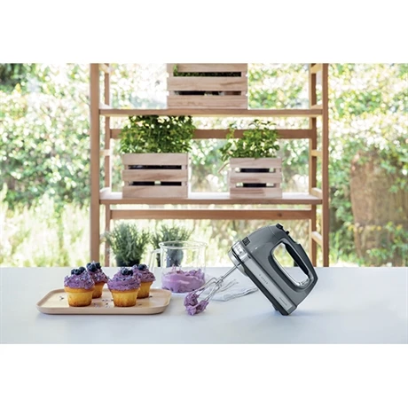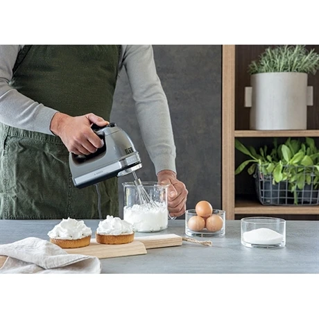 Les 9 vitesses du batteur à main Kitchenaid 5KHM9212ECU avec démarrage lent évitent les projections sur le plan de travail lorsqu’on le met en marche. Tous les ingrédients sont parfaitement mélangés, quelle que soit leur consistance ou la vitesse sélectionnée. Son moteur puissant et silencieux s’associe à des accessoires performants, pour un maximum de possibilités : fouet à fils, crochets pétrisseurs et pied mélangeur qui s’éjectent d’une seule pression sur un bouton et permettent de réaliser de nombreuses recettes.