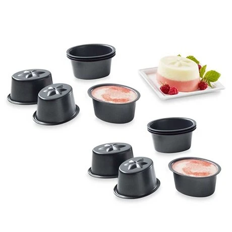 Ce lot de 12 petits moules en acier vous permet de préparer et de cuire aspics, gâteaux, mousses de fruits ou de légumes et terrines au format individuel. Leur fond étoilé égaye leur présentation. Leur revêtement anti-adhérent permet de ne pas les graisser tout en assurant un démoulage et un nettoyage faciles.