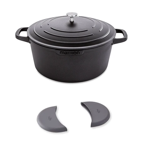 La cocotte en fonte d’aluminium de 28 cm Mathon est 3 fois plus légère que ses concurrentes traditionnelles en fonte d’acier. Idéale pour saisir et mijoter, cette cocotte vous promet des plats moelleux et savoureux grâce à son couvercle à picots qui fait ruisseler la condensation tout au long de la cuisson.