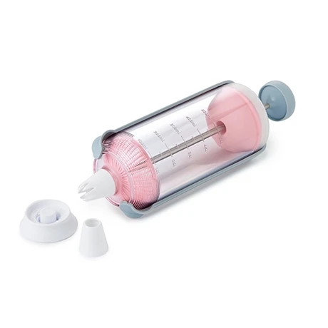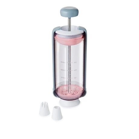 Au niveau du dressage, le mélangeur à desserts Betty Bossi est fourni avec deux douilles, une ronde et une en forme d’étoile. Une fois votre mélange prêt, il vous suffira de pousser le piston pour créer vos desserts comme avec une poche à douille classique, mais sans besoin de transvaser vos préparations. Détail appréciable, le système est fait spécialement pour laisser un minimum de matière au fond. Grâce au mélangeur à crèmes Betty Bossi, vous ferez l’ensemble de votre recette de crème avec un seul outil, économisant non seulement du temps lors de la préparation mais également lors de l’entretien, puisque vous n’aurez qu’un seul ustensile à laver et que l’ensemble est démontable et passe au lave-vaisselle. Une cuisine rapide, propre et un dessert bien dressé en quelques mouvements.