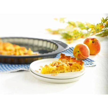 Le Moule à tarte silicone diamètre 28 cm fait partie de la gamme de moules Mastrad Silicone, qui allie respect des traditions et technologies innovantes pour faciliter la cuisine du quotidien. Ces moules sont incassables, en 100% silicone Premium très résistante. Anti-adhérents et ultra-résistants (de -40°C à +220°C), ils sont munis de poignées rigides pour une manipulation aisée. Leur coloris gris translucide permet de contrôler plus facilement la cuisson. Ils assurent un démoulage parfait et se nettoient au lave-vaisselle.