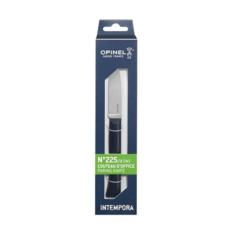 Le couteau d’office Intempora N°225 proposé par Opinel est inspiré du design du couteau traditionnel Opinel, apportant le même confort de prise en main et une qualité de coupe exceptionnelle. Robuste, sa lame est en acier Sandvik 12C27 modifié, un acier inoxydable doté d’une haute teneur en carbone pour un tranchant très efficace et une grande résistance à la corrosion. La lame plein-soie se prolonge dans tout le manche et contribue à la robustesse et à l’équilibre du couteau, le poids étant réparti. Armé face à l’usure, aux chocs et à l’eau, ce couteau comporte un manche surmoulé chargé en fibre de verre. Maniable, sa forme galbée au profil triangulaire assure une prise en main sûre et confortable. Ce couteau d’office est idéal pour couper et peler les fruits et légumes, ainsi que pour parer les viandes.