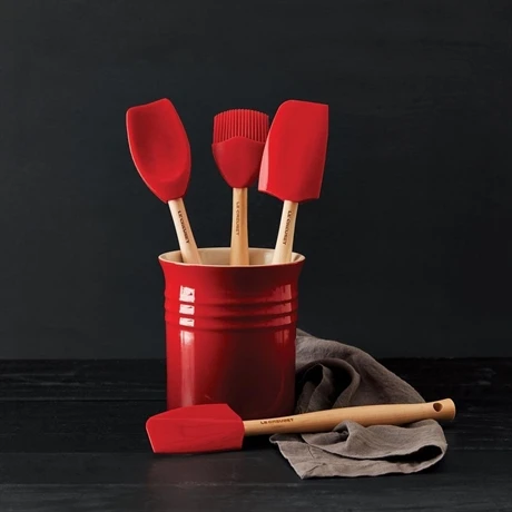 Esthétique, le pot à ustensiles 1,1 L Cerise Le Creuset fait partie d’une gamme en céramique émaillée qui résiste aux rayures et se nettoie facilement. Ses couleurs chatoyantes apportent une touche de peps dans la cuisine tout en conservant tous les ustensiles indispensables à la préparation des repas à portée de main.