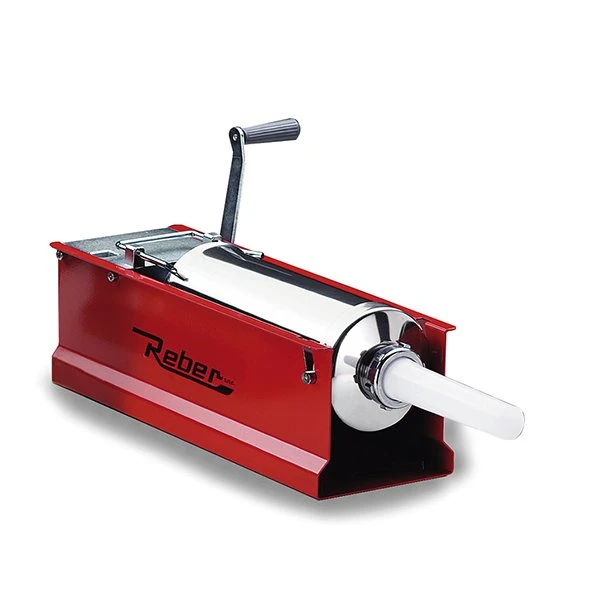 Ce poussoir à saucisse Bron Coucke permet la mise en boyaux de toutes sortes de saucisses, saucissons, boudins sans y adjoindre l’air altérant rapidement la viande. Equipé de 4 entonnoirs de dimensions différentes, il est possible d’ensacher tout type de viande et de saucisse. L’engrenage métallique intégré permet de réduire ou de multiplier la vitesse du piston et facilite les opérations d’ensachage et d’extraction du piston à la fin du travail.