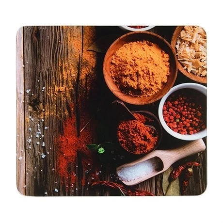 La Protection murale en verre Epices protège joliment votre mur des éclaboussures et projections de cuisine. Elle peut être utilisée comme protège plaque de cuisinière, écran mural, vaste planche à découper ou plan de travail mobile.