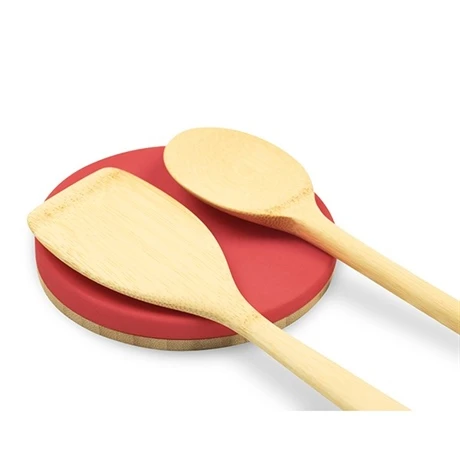 Le repose cuillère en bambou rouge est très pratique pour reposer les ustensiles entre deux utilisations pour protéger votre plan de travail des tâches de gras ou de vos préparations.