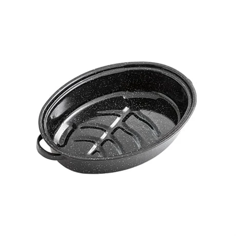 En revêtement céramique Graniteware, le Roaster Graniteware 3/6 personnes vous permet de cuire, sur la flamme ou au four, vos rôtis et volailles. Son couvercle à picot assure un arrosage permanent des aliments, pour un résultat moelleux et savoureux. La grille du roaster, vendue séparément, permet de garder la graisse de vos préparations au fond du roaster, garantissant ainsi une cuisine saine et diététique. Très résistant aux rayures, le roaster passe au lave-vaisselle. Pour un résultat 100% diététique une grille est vendue séparément (ref 38007).