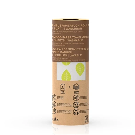 Une alternative écoresponsable, recyclable, réutilisable et bien plus absorbante par rapport aux essuie-tout traditionnel : optez pour le rouleau de 40 essuie-tout en bambou Nuts. Chaque feuille peut être lavée jusqu’à 50 fois grâce à sa composition en viscose de bambou, et est en moyenne 5 fois plus absorbante. Enlevez la poussière, épongez des liquides renversés, faites vos vitres ou séchez votre vaisselle bien plus efficacement et avec un impact moindre sur la planète.