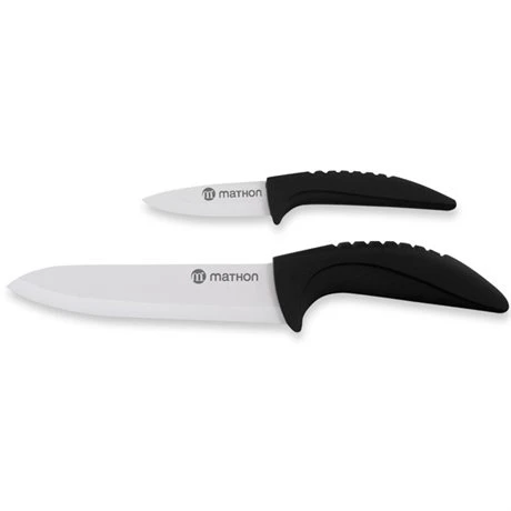 Les 2 couteaux en céramique 7,5 cm et 15 cm de Mathon possèdent des propriétés de dureté exceptionnelle pour trancher les fruits, les légumes, les poissons et les viandes sans abîmer leur chair. Leur manche ergonomique permet une tenue en main parfaite pour une précision exemplaire.