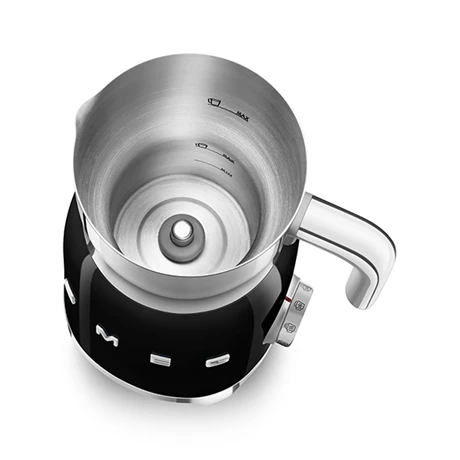 Cette chocolatière noire Smeg utilise un système de chauffe par induction sûr et rapide et s’arrête automatiquement lorsque votre boisson est prête. Sa carafe amovible en inox a une capacité de 600 ml pour chauffer du lait et de 250 ml pour des boissons montées et crémeuses.